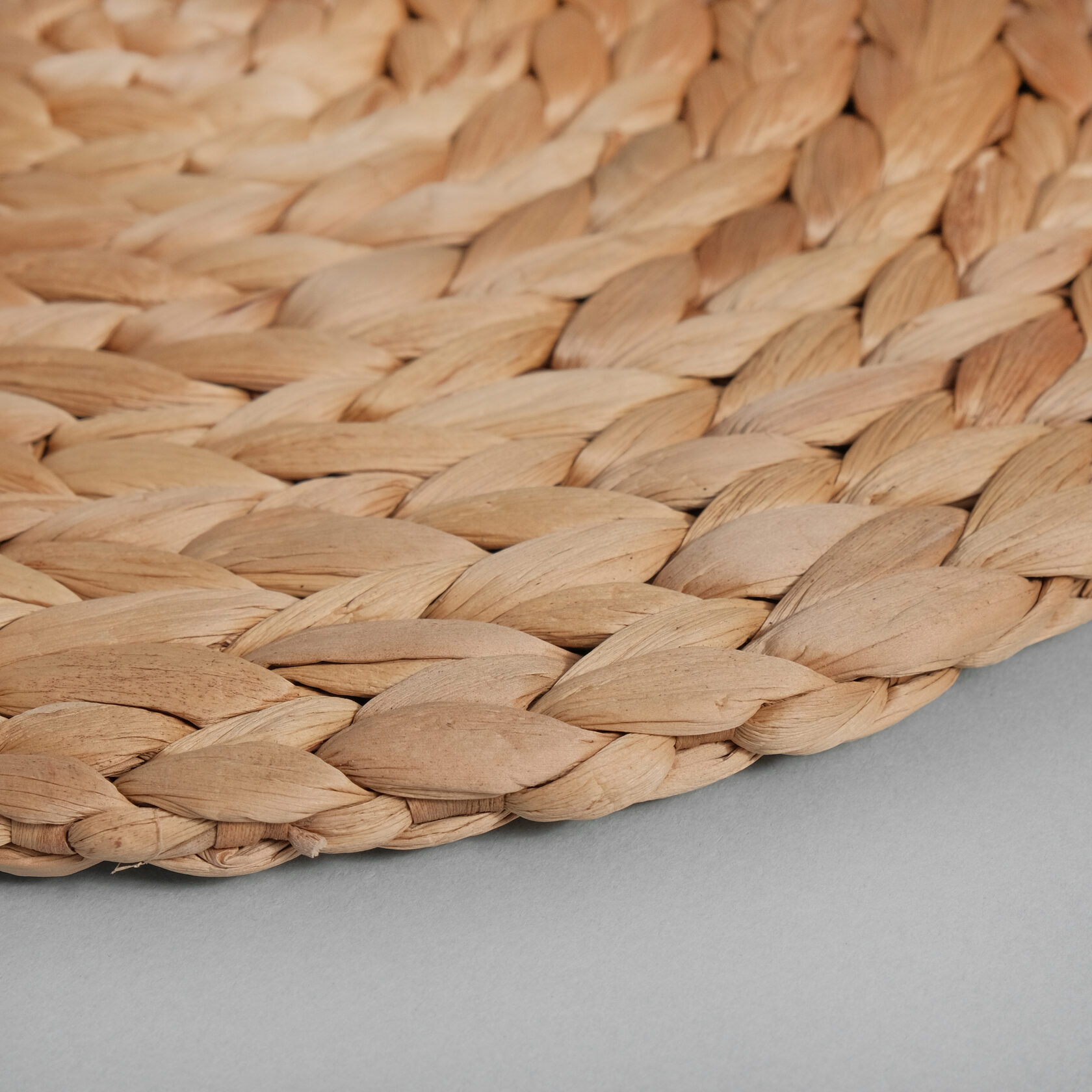 Плейсматы выполнены из натурального материала: водного гиацинта. Экологичность, ручное производство и, вместе с тем, вклад в борьбу с зарастанием водоемов эйхорнией (другое название водного гиацинта) важные составляющие процесса создания салфеток.