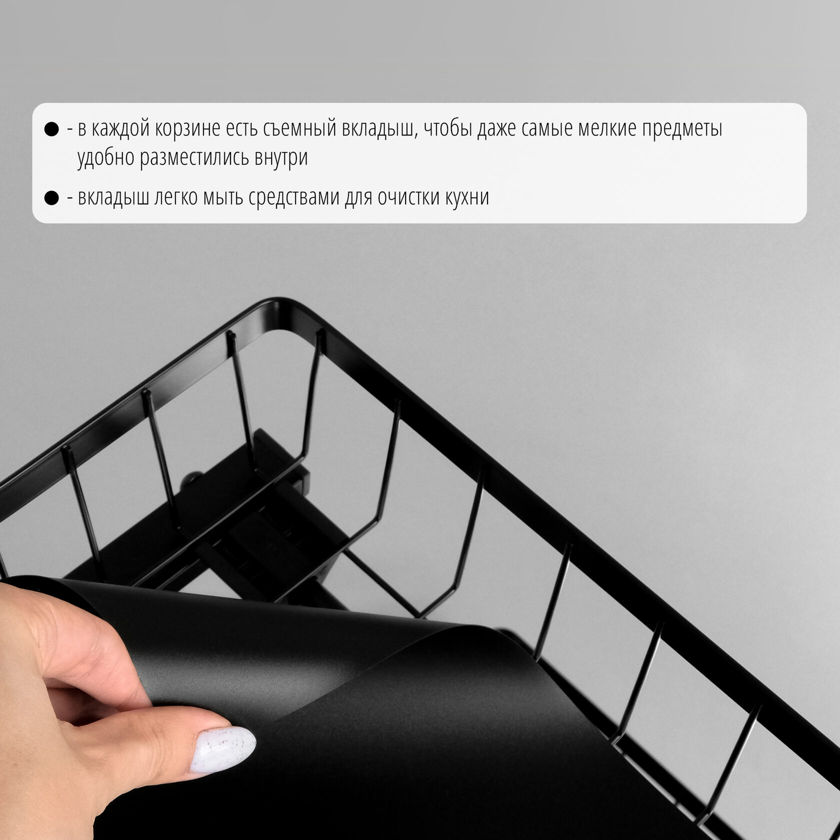 - Многофункциональность и экономия места: этот органайзер идеально подходит для хранения продуктов, специй, туалетных принадлежностей, канцелярии и чистящих средств. Он станет незаменимым помощником в кухне, ванной комнате, кабинете, прачечной и гостиной.
