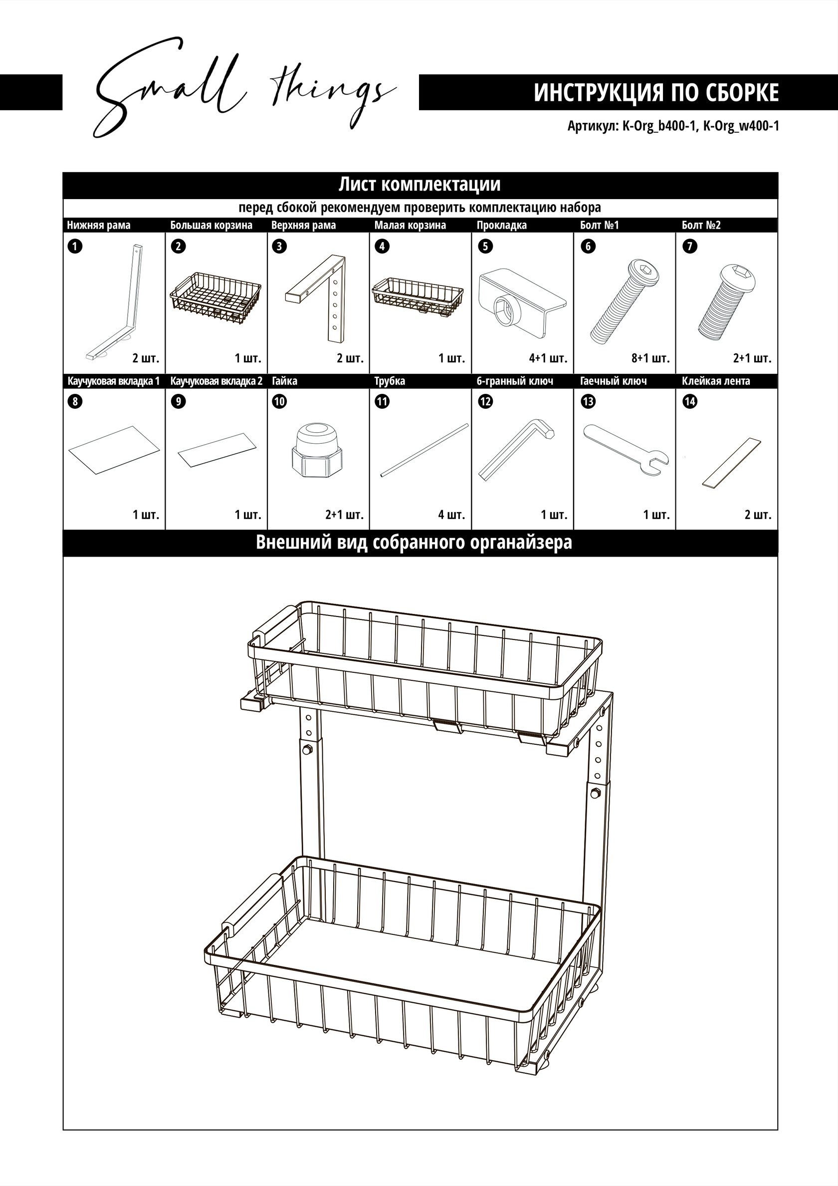 Комплектация - органайзер с двумя выкатными ящиками - инструкция по сборке