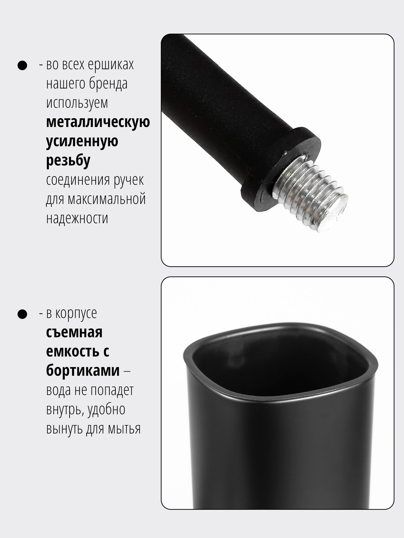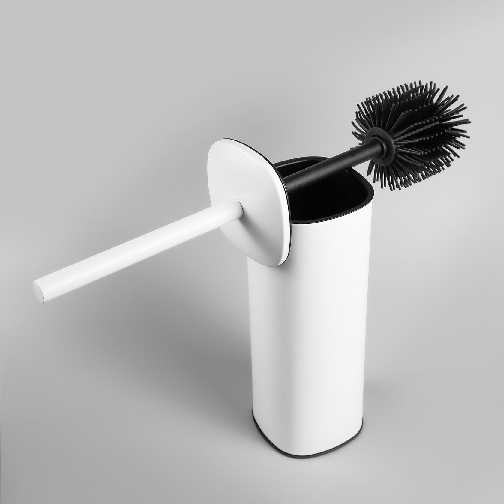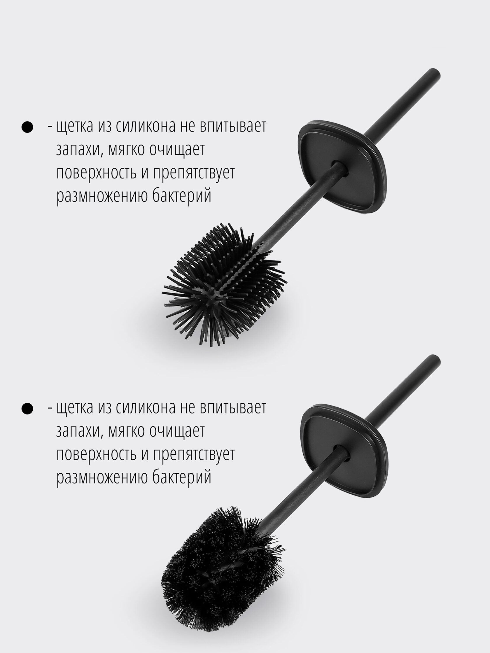 Напольный ершик представлен в черном и белом цветах - можно выбрать подходящий вашему интерьеру.