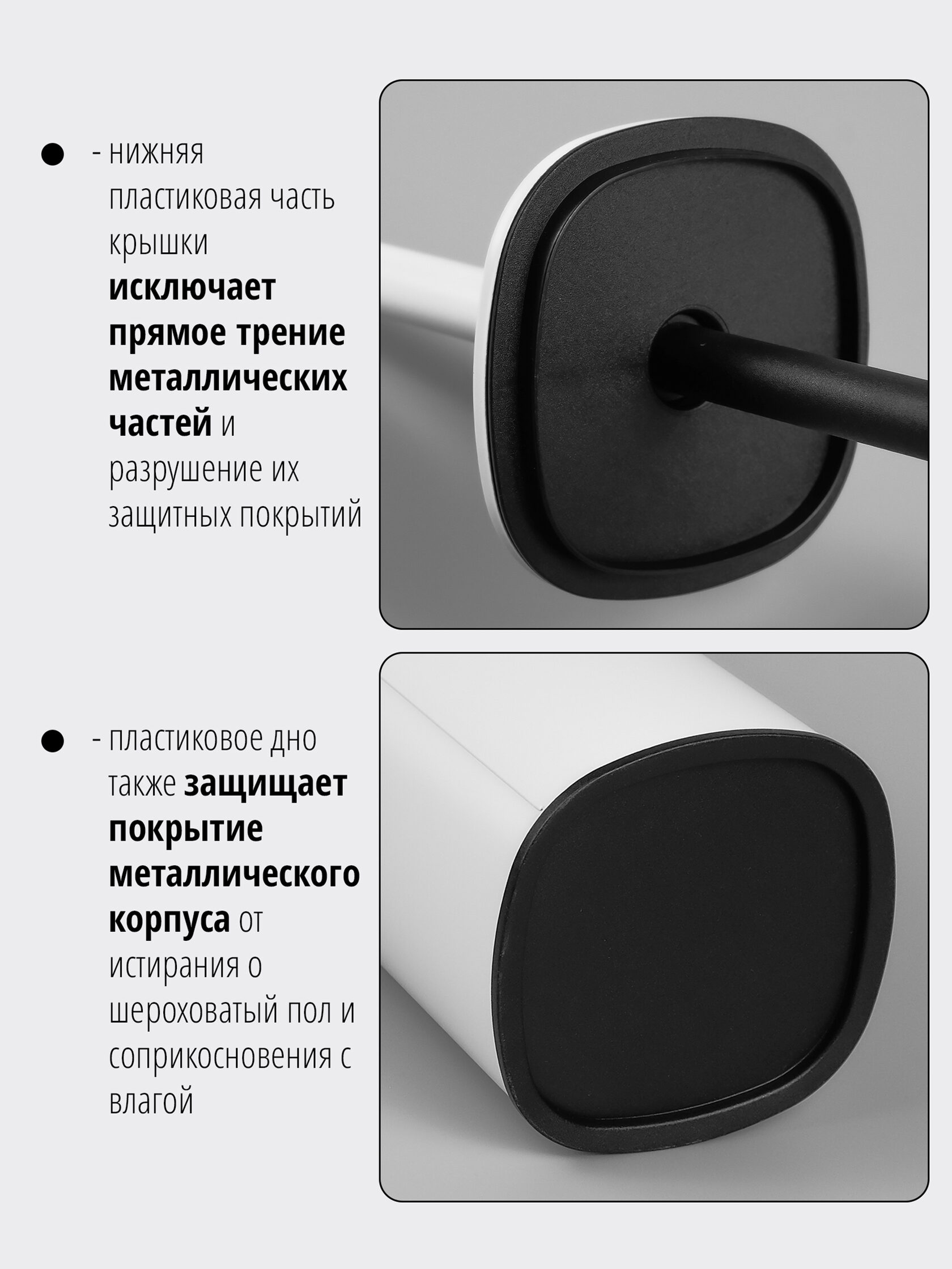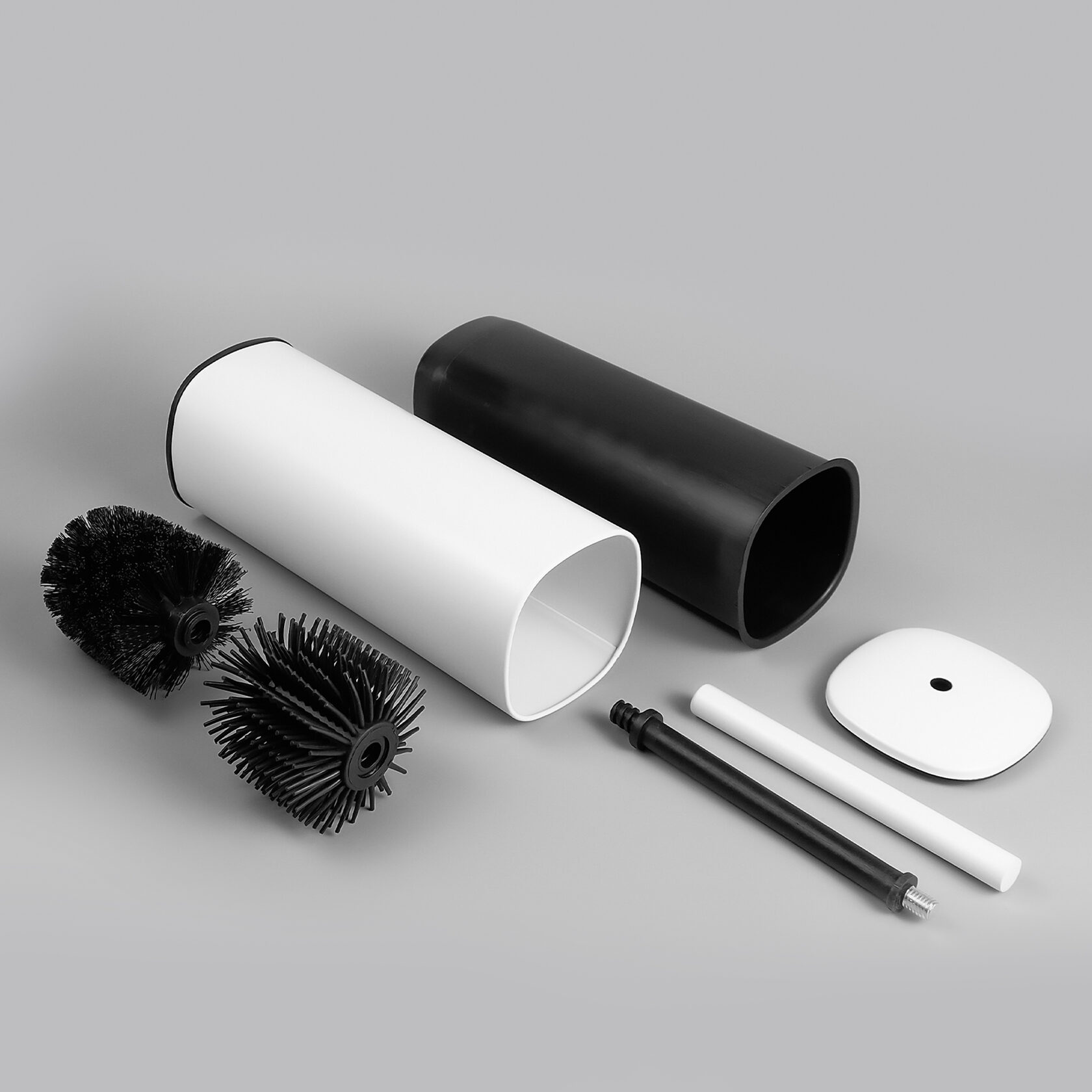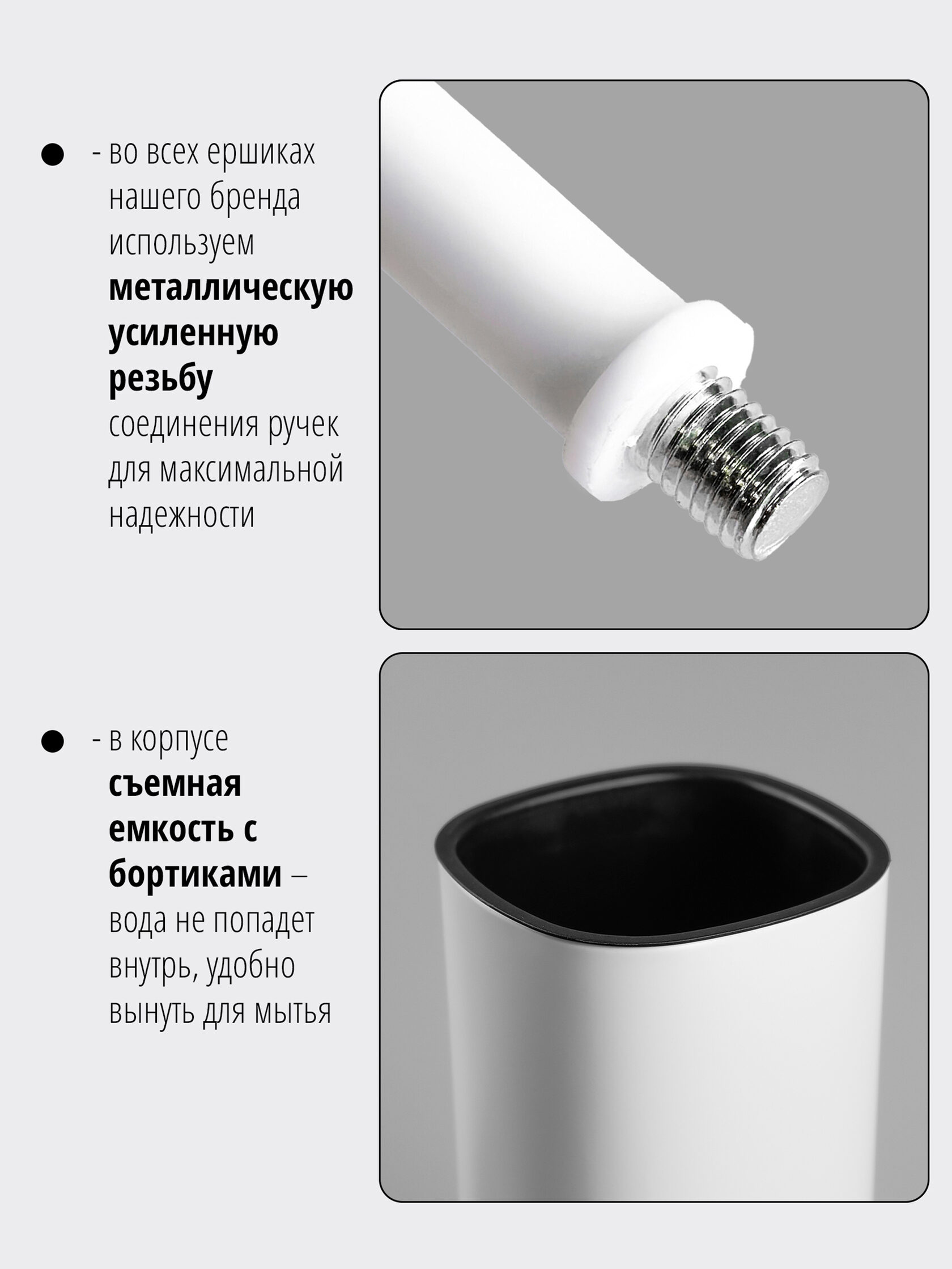 Напольный ершик представлен в черном и белом цветах - можно выбрать подходящий вашему интерьеру.
