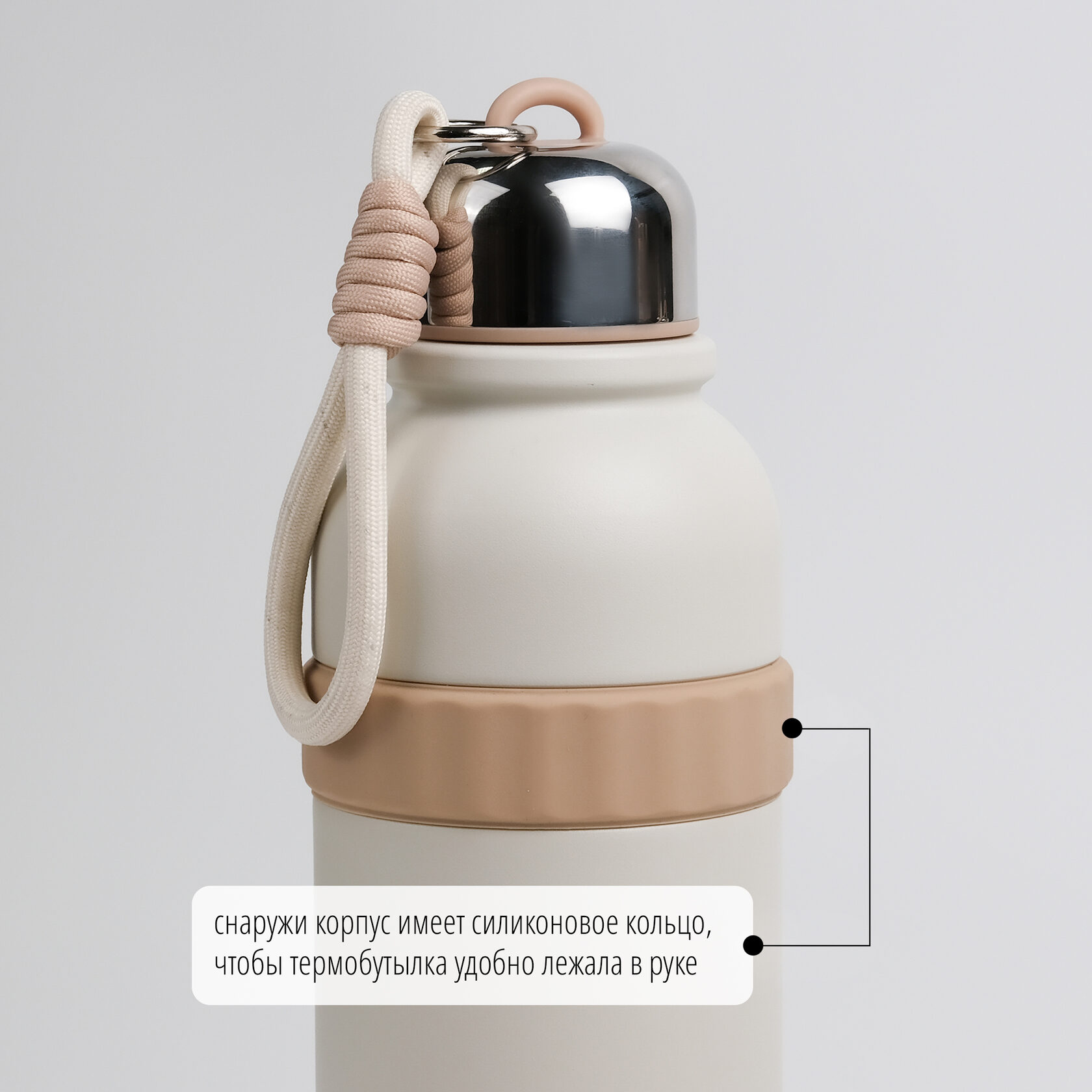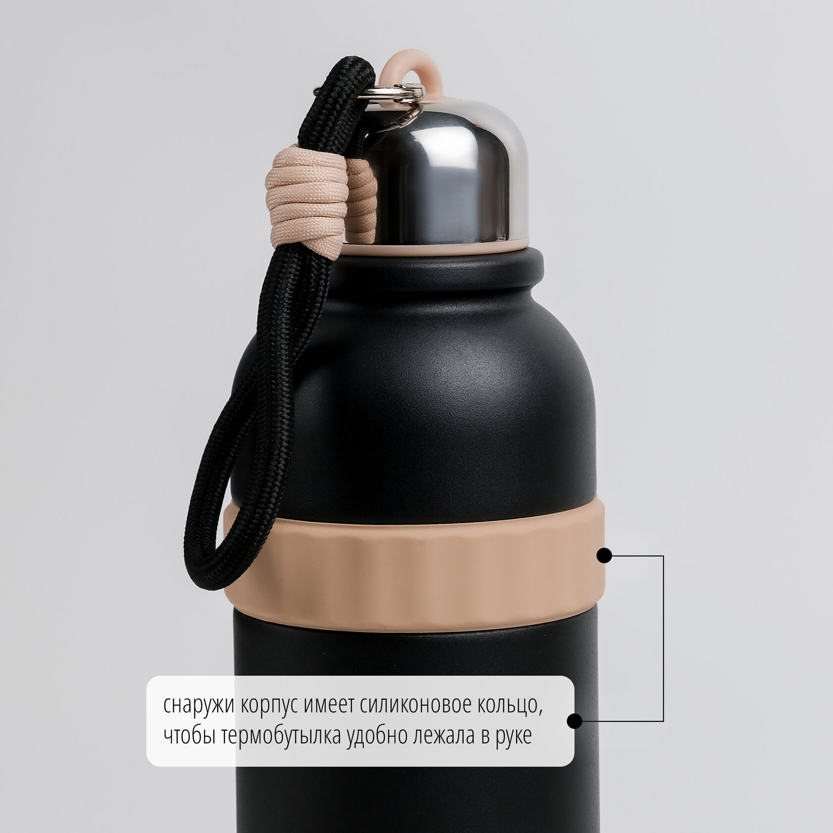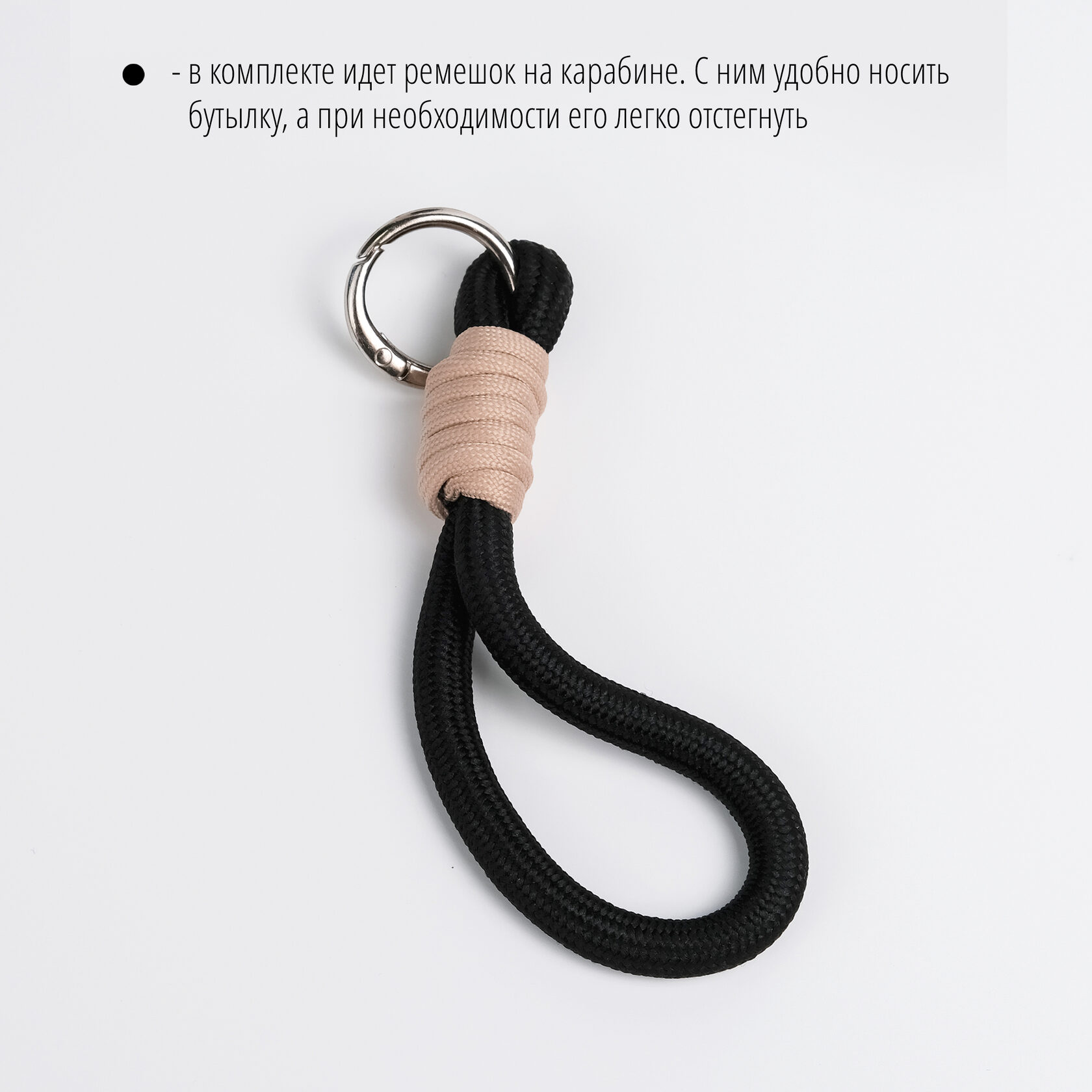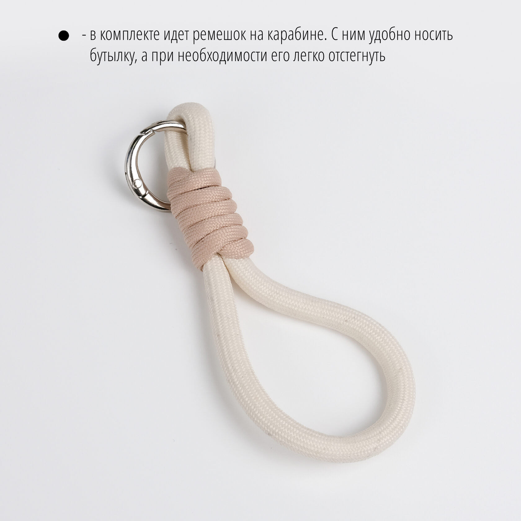 В комплекте с термосом идет ремешок на карабине. С ним удобно носить бутылку, а при необходимости его легко отстегнуть.