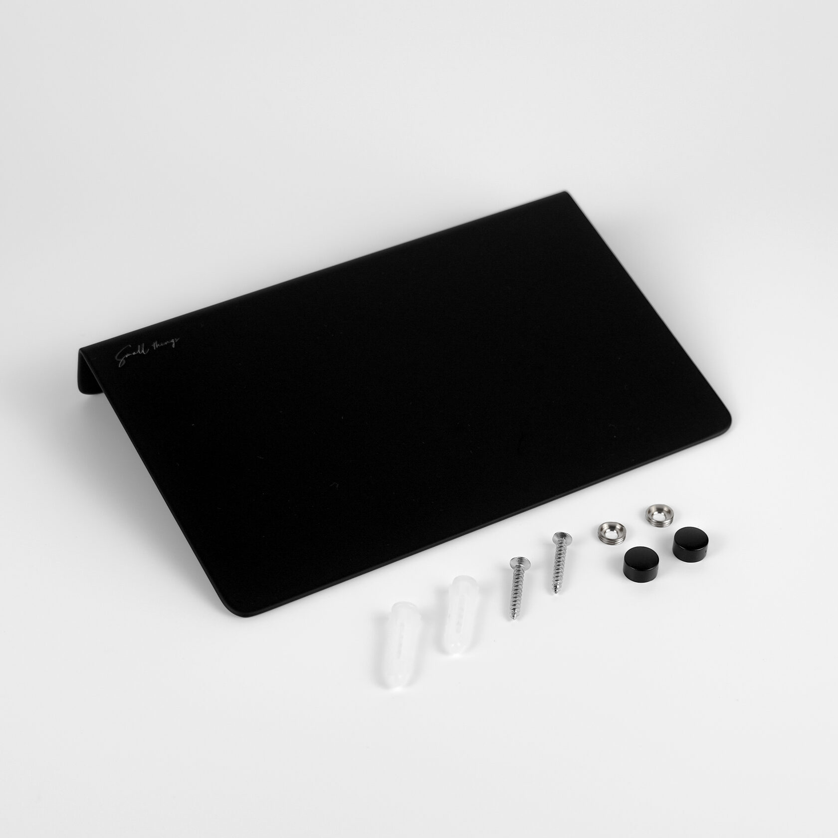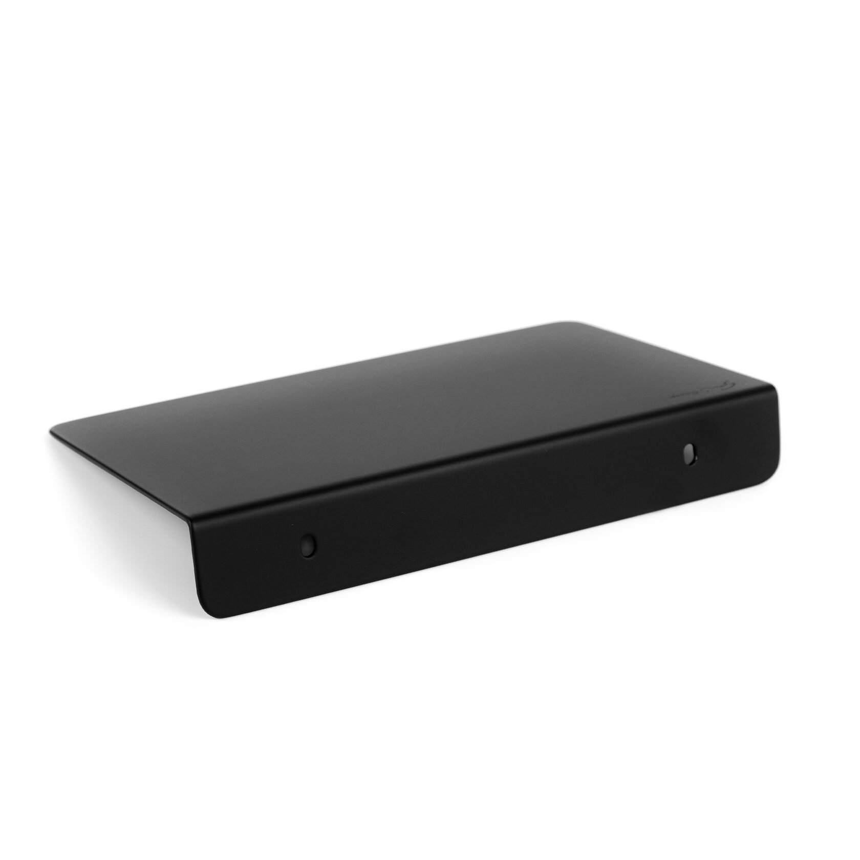 Прямая полка имеет скругленные углы и край без бортика, матовое черное покрытие, приятное на ощупь.
