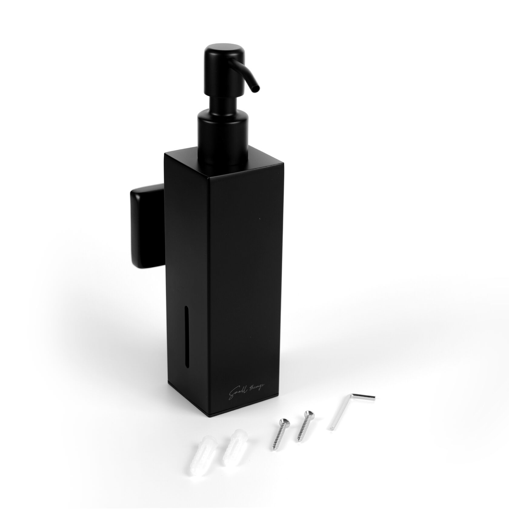 Комплектация - корпус с внутренней емкостью на 200 мл - помпа - крепежный комплект (2 шурупа, 2 дюбеля, шестигранный ключ)
