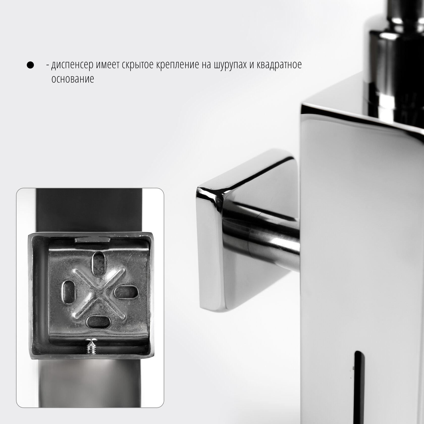 Диспенсер подойдет для любых моющих средств и может быть размещен как в зоне раковины, так и во влажной зоне душевой. Прочная нержавеющая сталь и надежное скрытое крепление обеспечат долгий срок службы.
