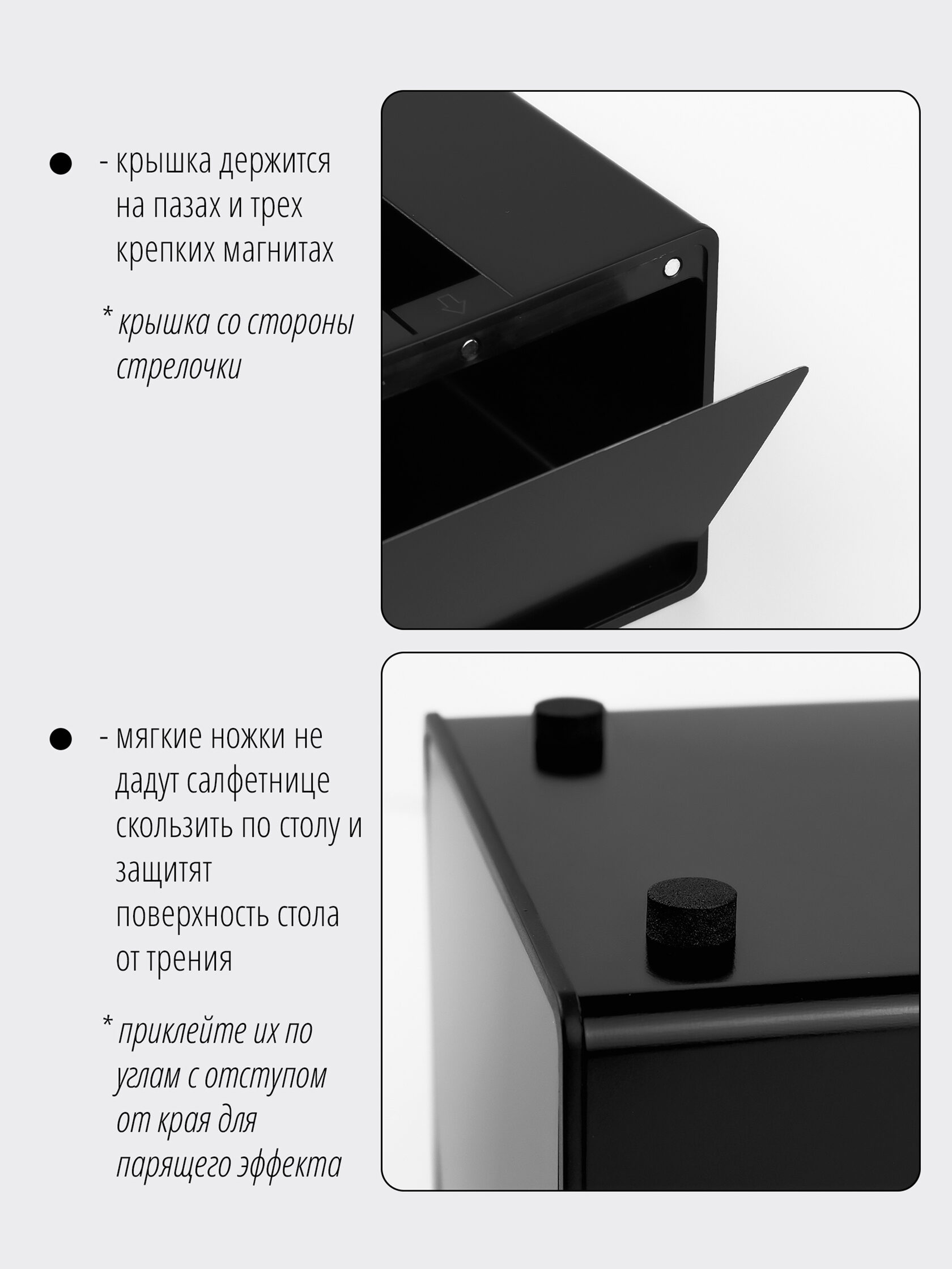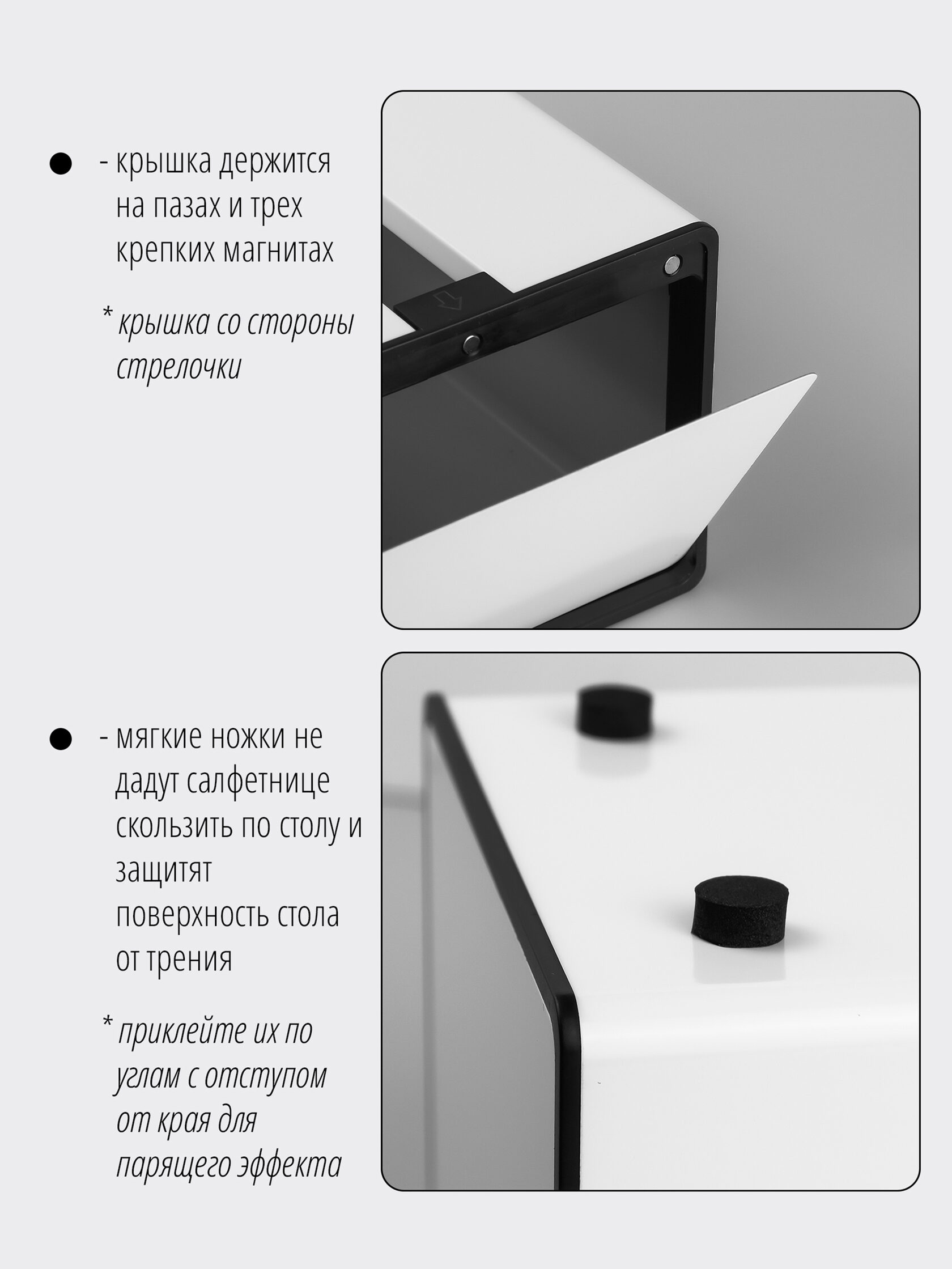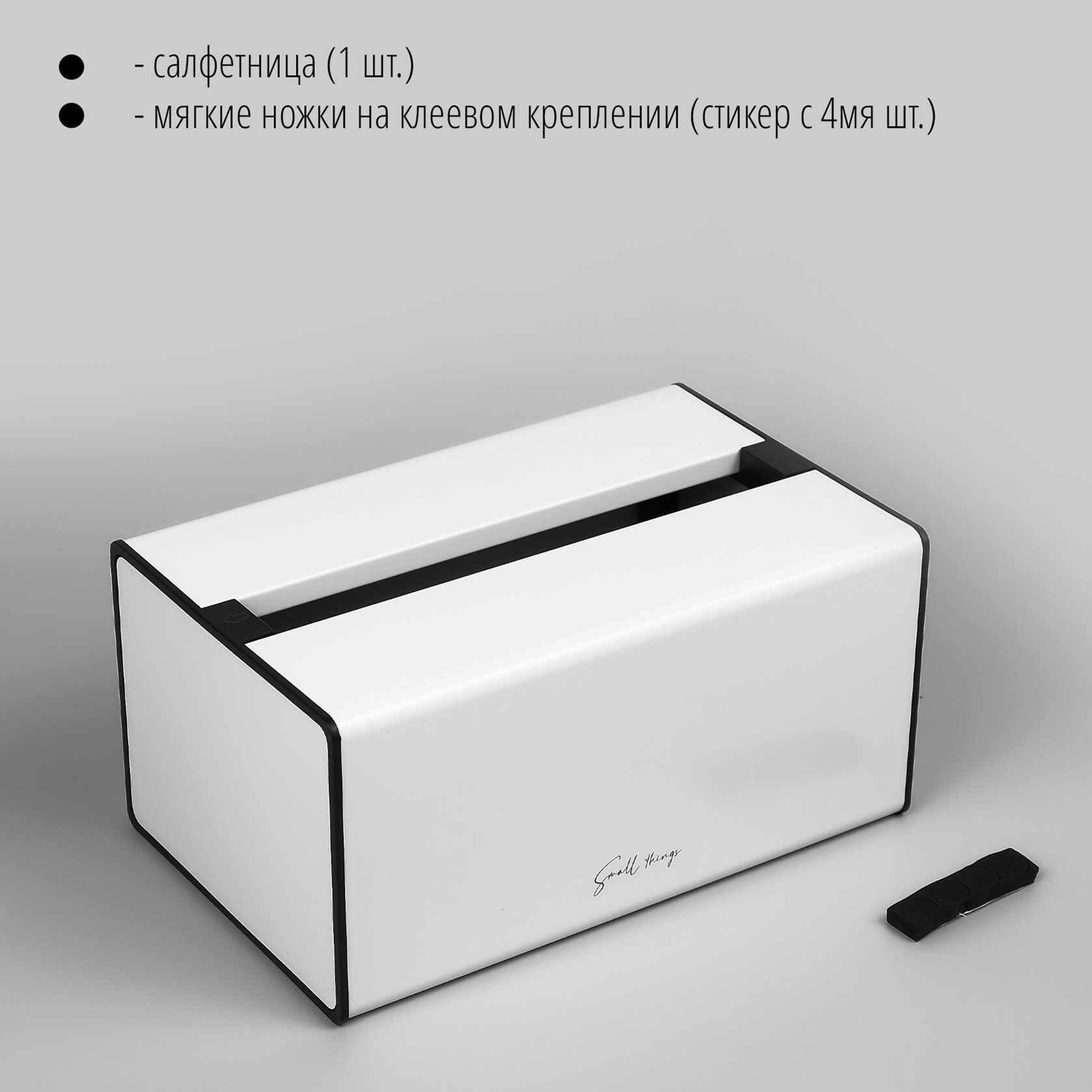 Комплектация - салфетница (1 шт.) - мягкие ножки на клеевом креплении (стикер с 4мя шт.)