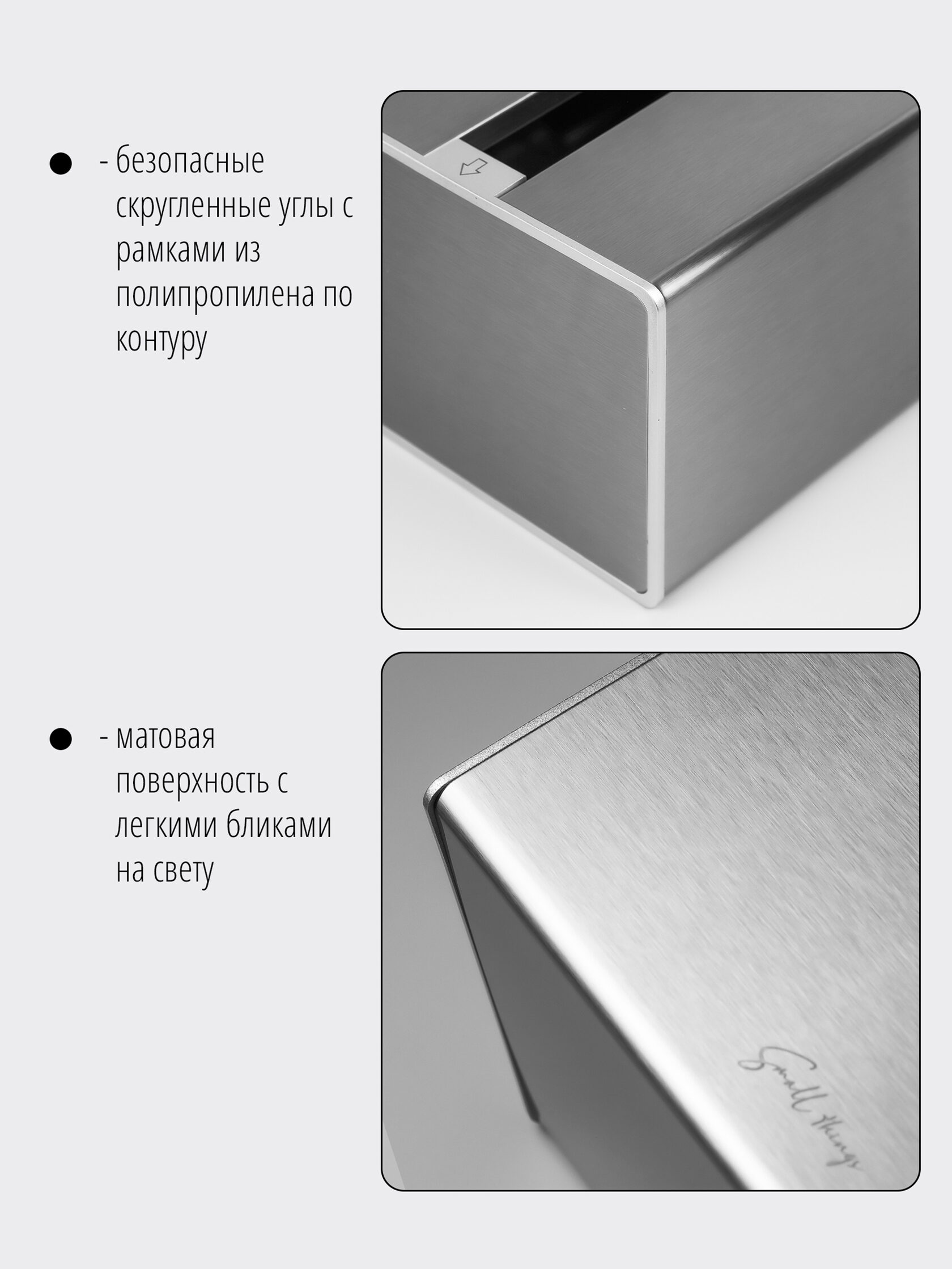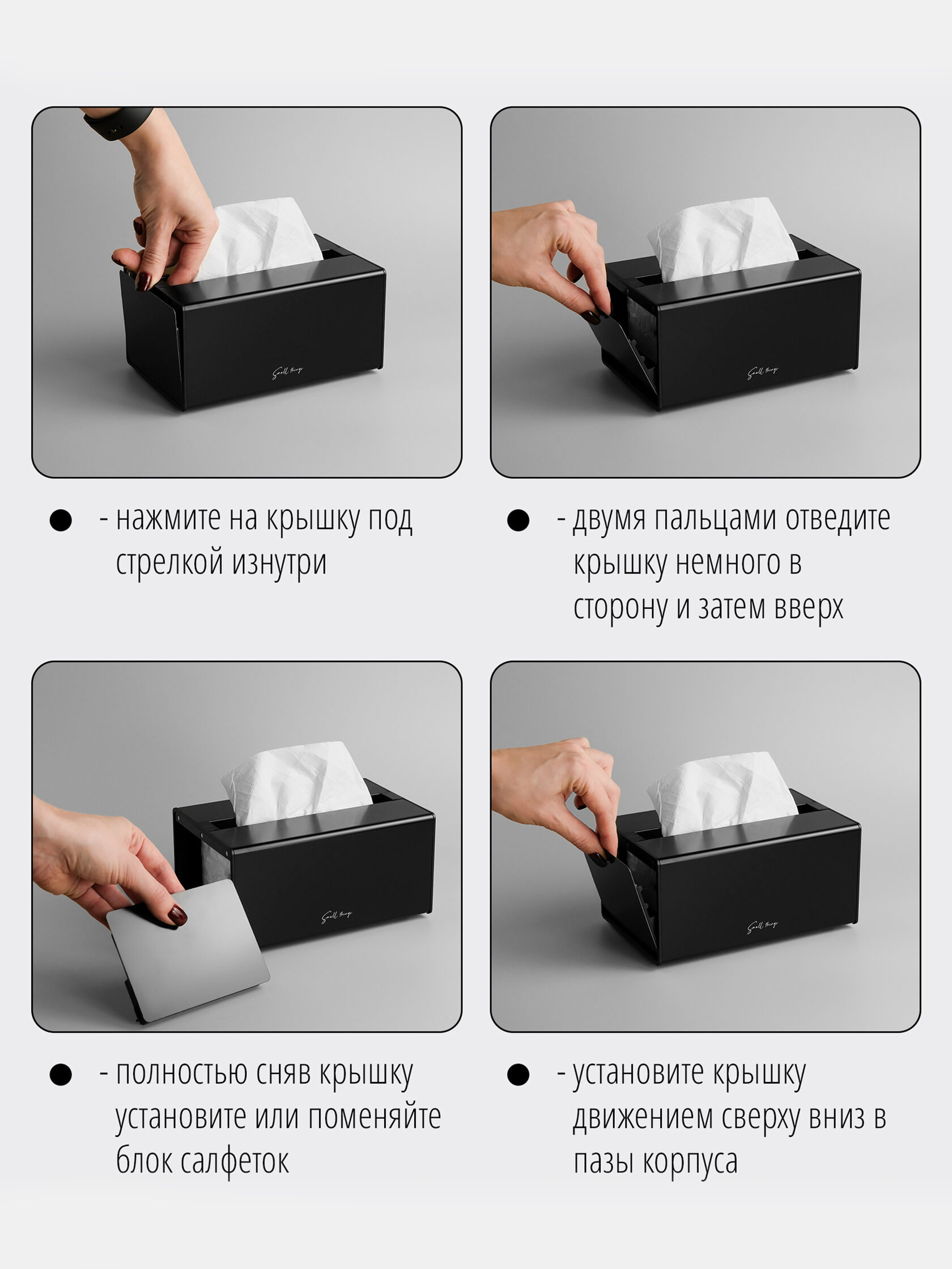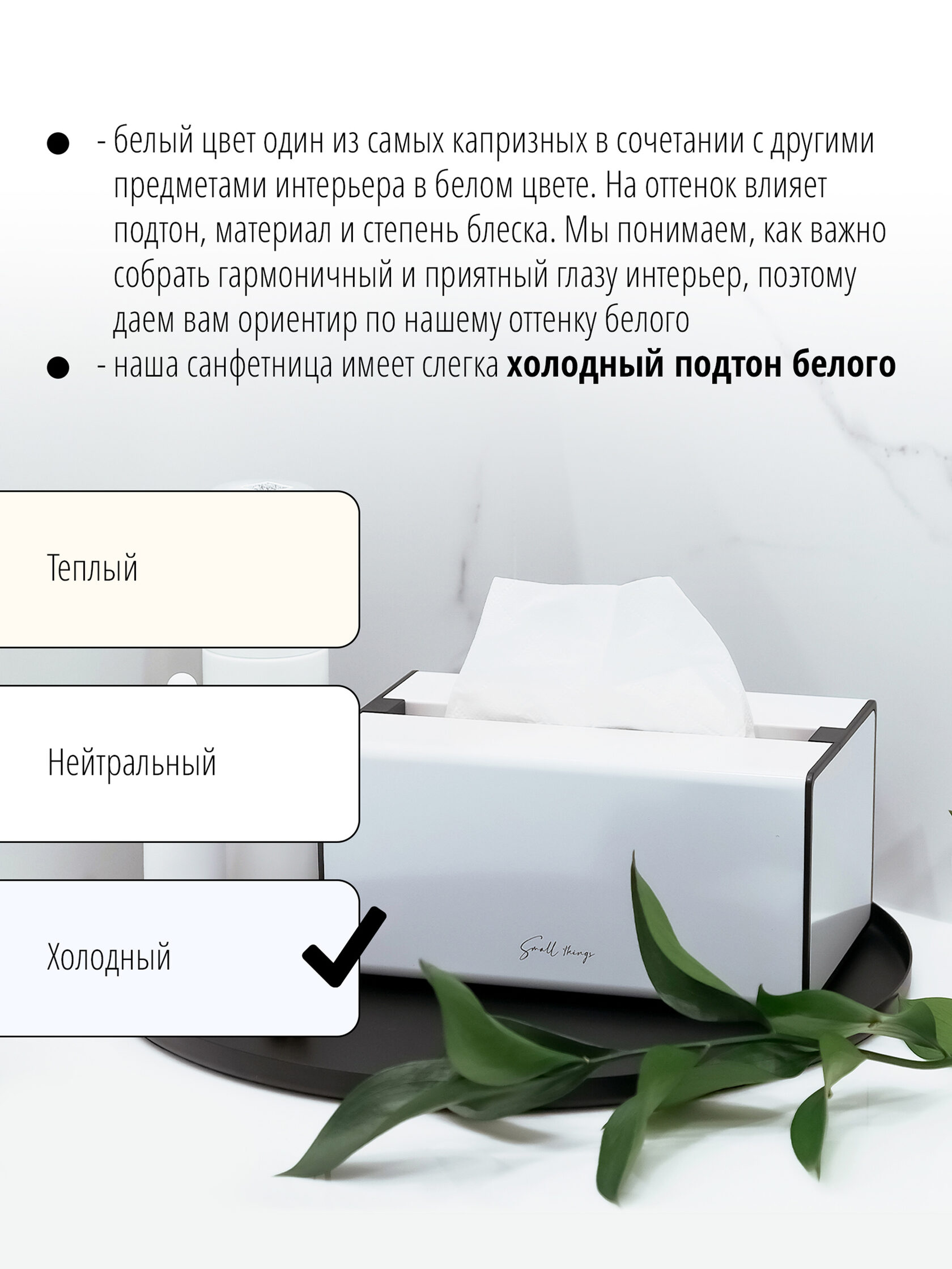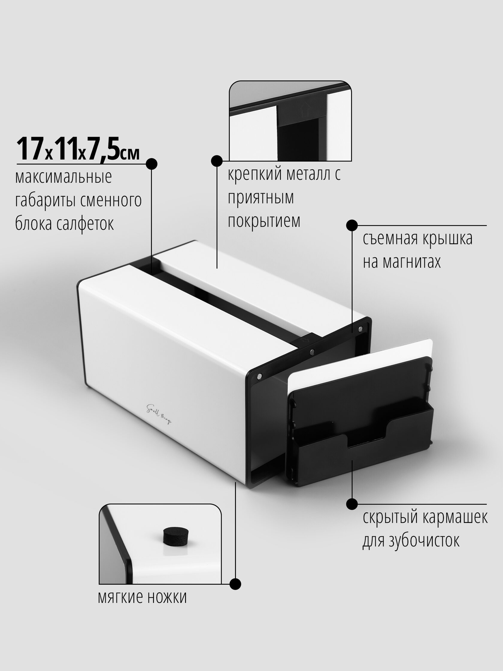 Интерьерная салфетница от бренда «Small Things» — это гармоничное сочетание дизайна, функциональности и безупречного качества. Ее лаконичные формы и сдержанная цветовая гамма позволяют изделию органично вписаться в любой интерьер кухни, столовой, гостиной или ванной.
