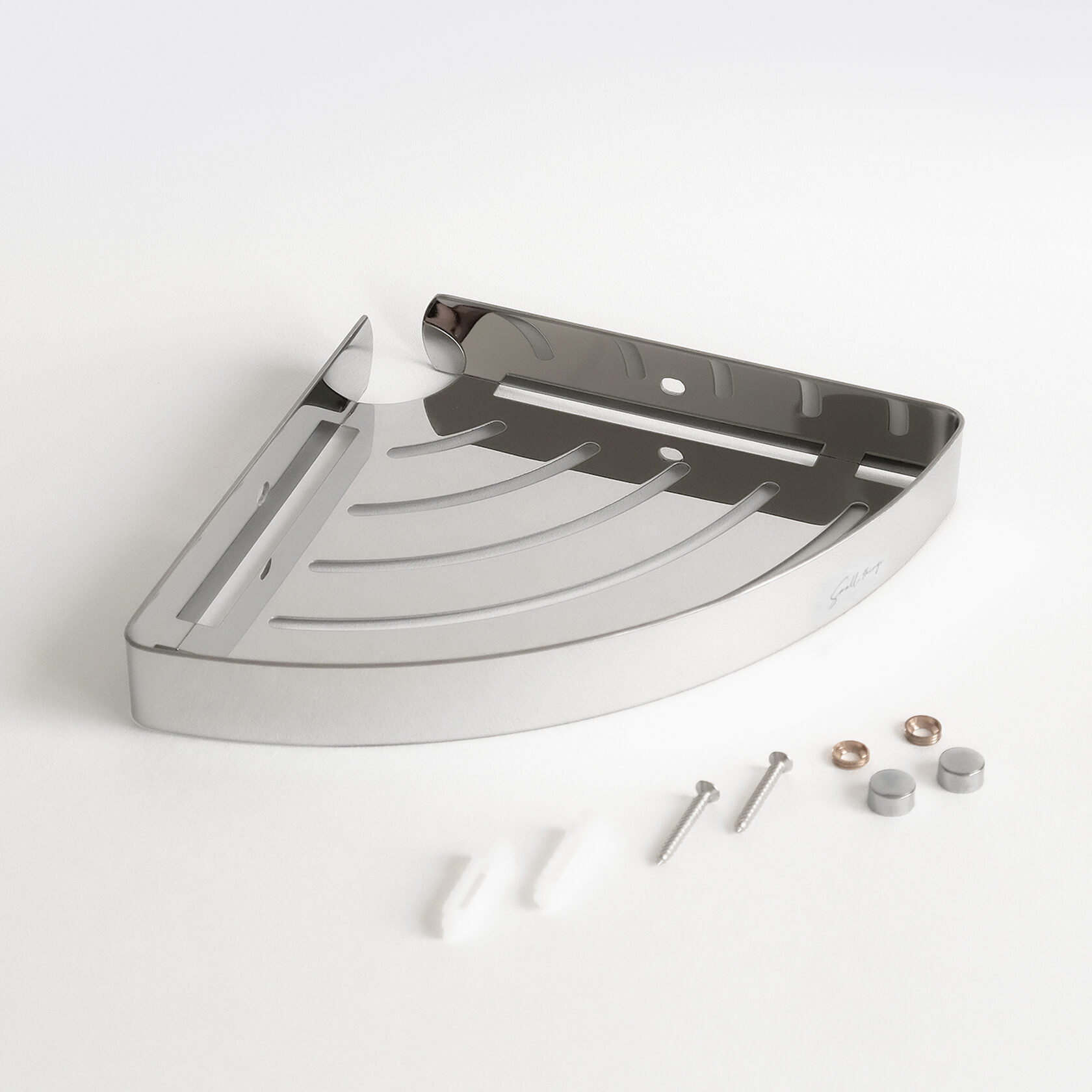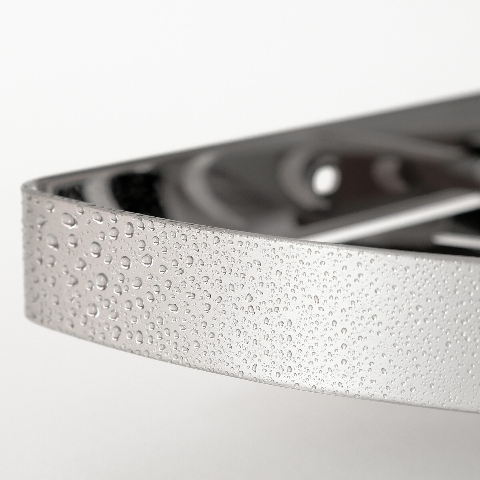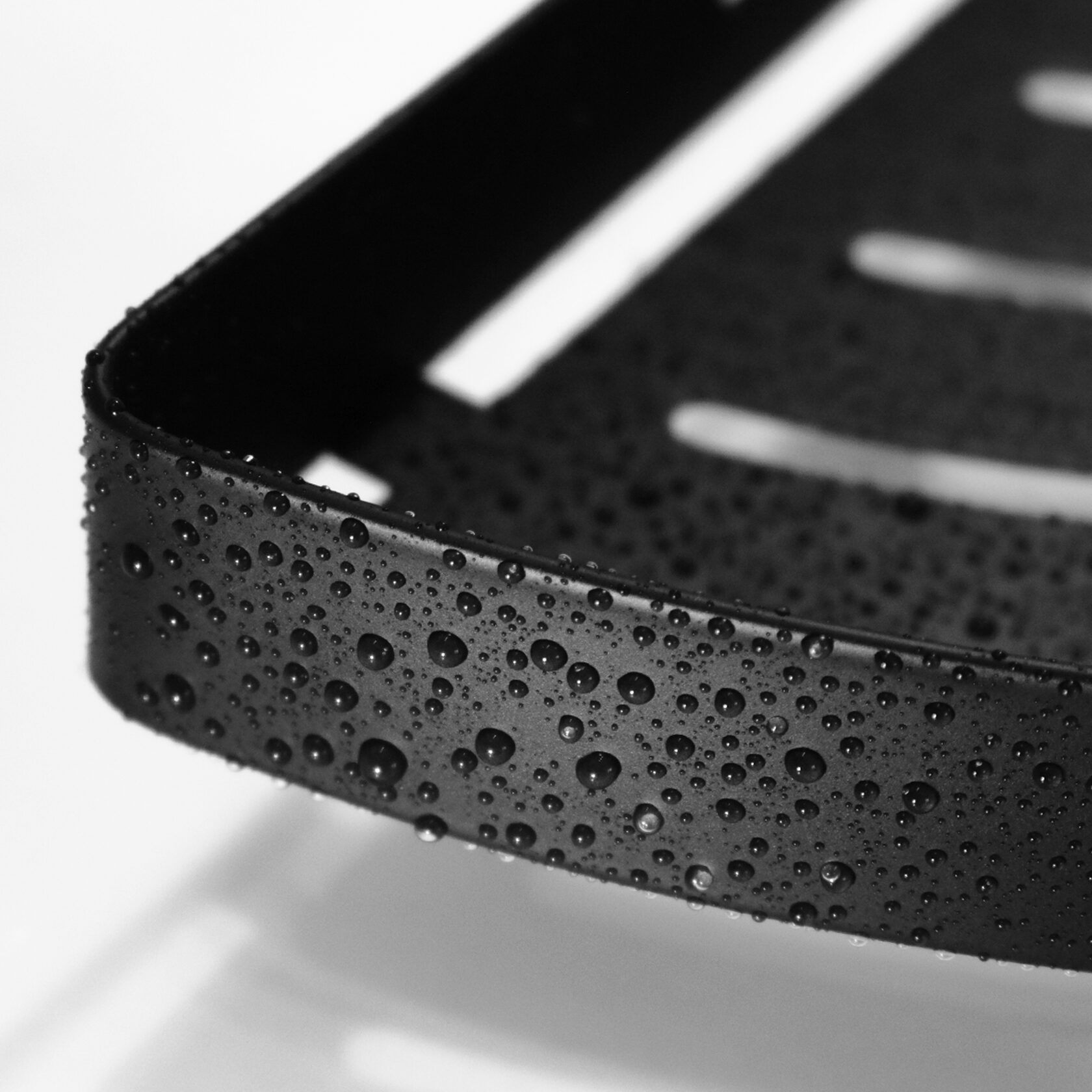 Отверстия на дне полки не дадут скапливаться воде внутри - она будет свободно стекать вниз. Также полка устойчива к влаге и не подвержена ржавчине.
