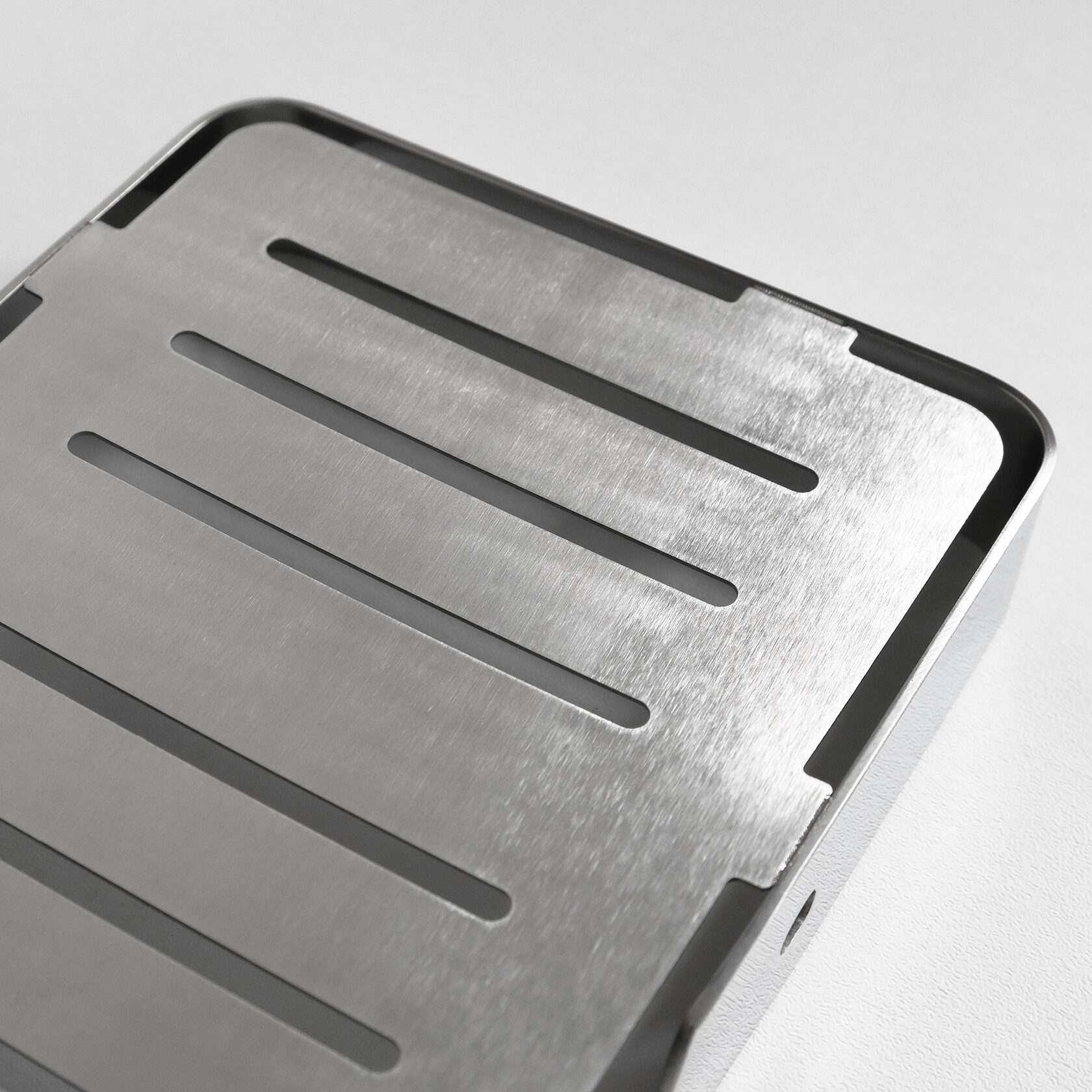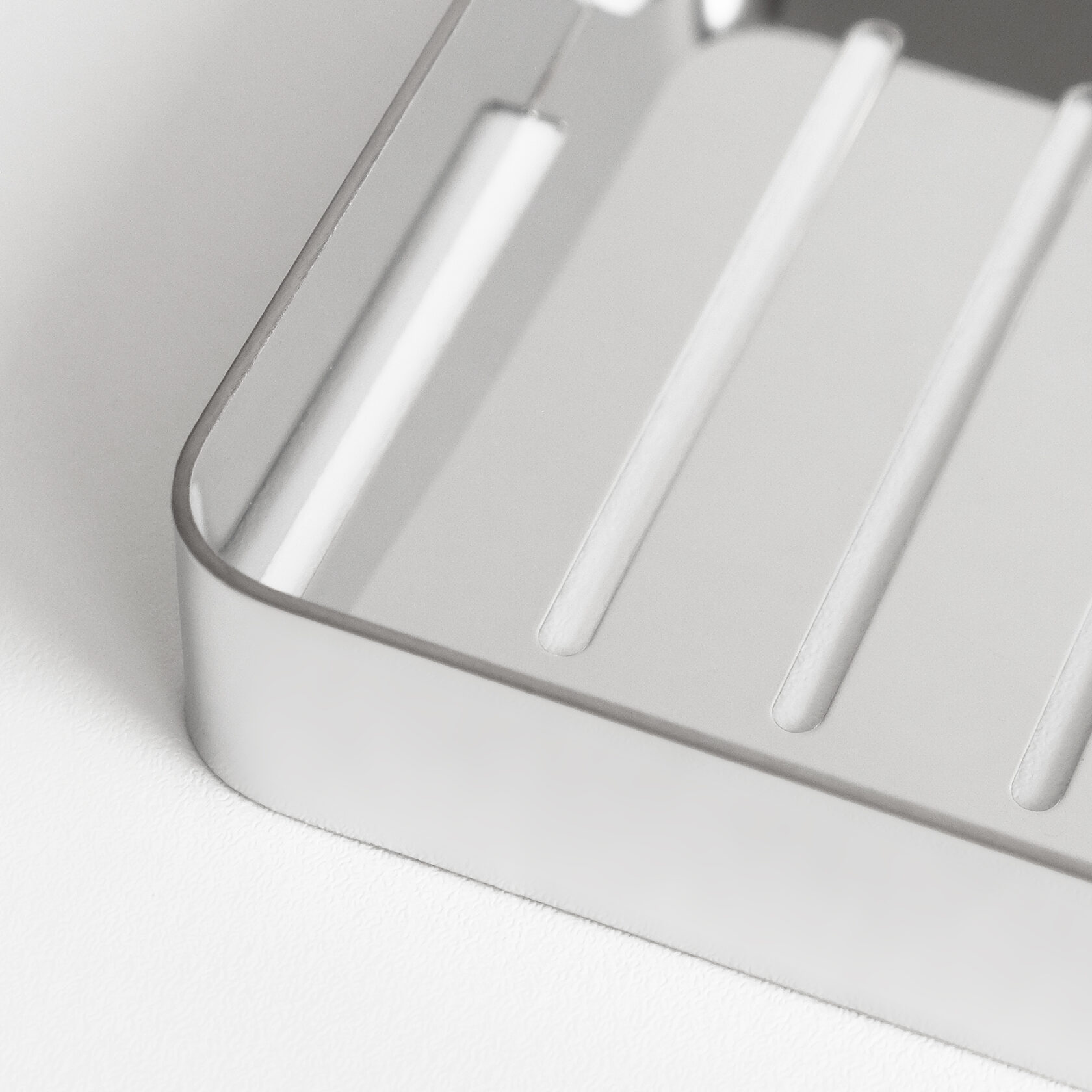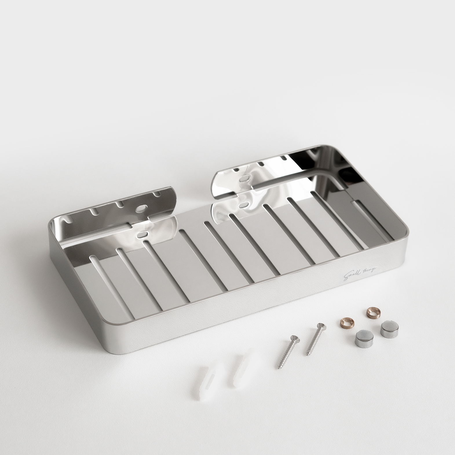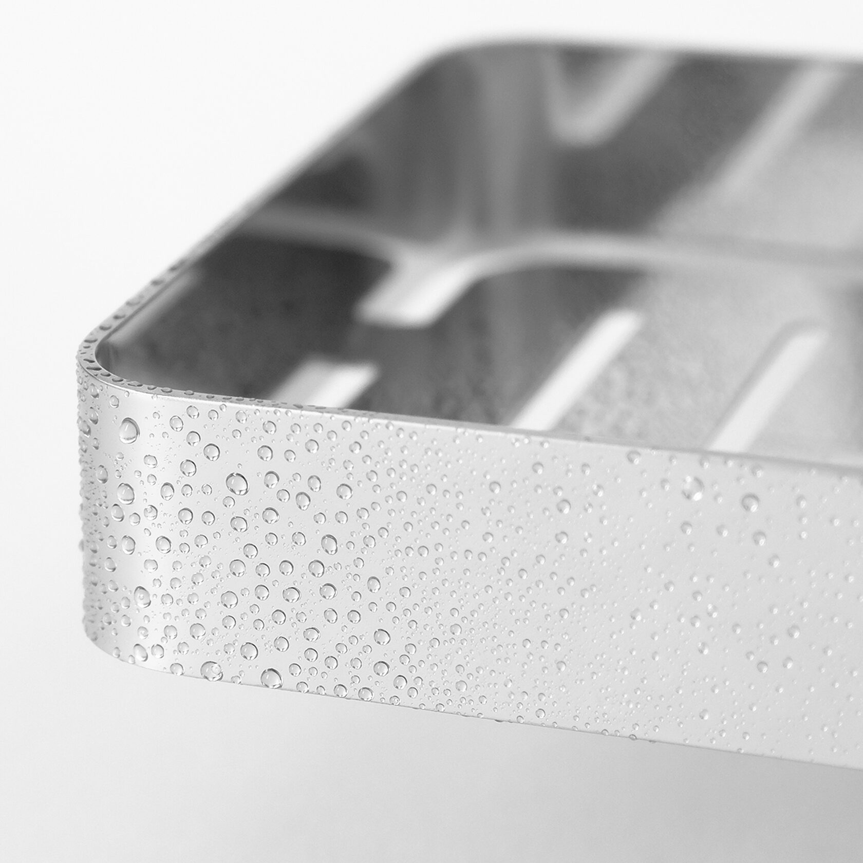Отверстия на дне полки не дадут скапливаться воде внутри - она будет свободно стекать вниз. Также полка устойчива к влаге и не подвержена ржавчине.
