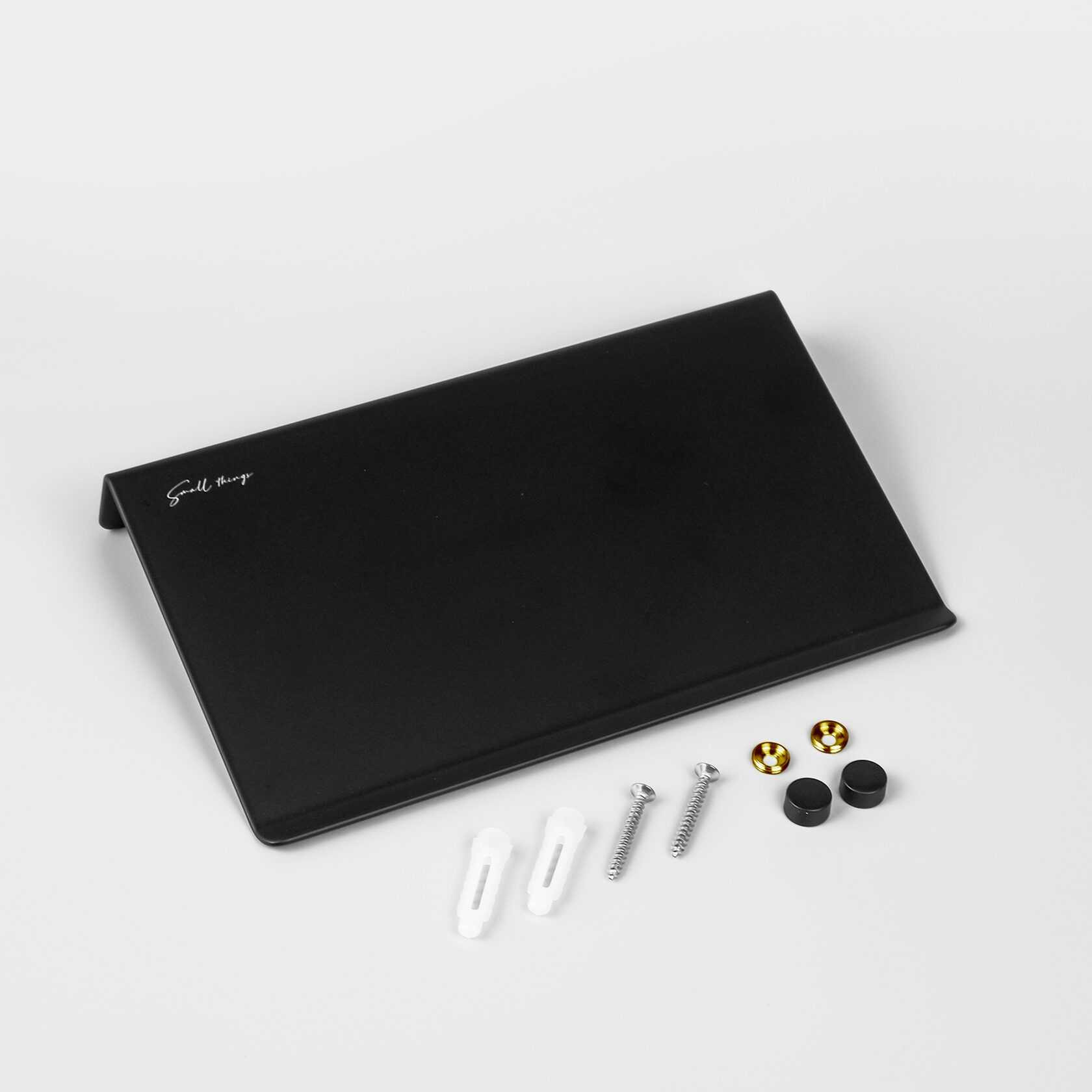 Полку легко установить на шурупы - все идет в комплекте вместе с аккуратными заглушками. Полка тяжелая за счет толщины стали, поэтому клеевое крепление ей не подойдет.