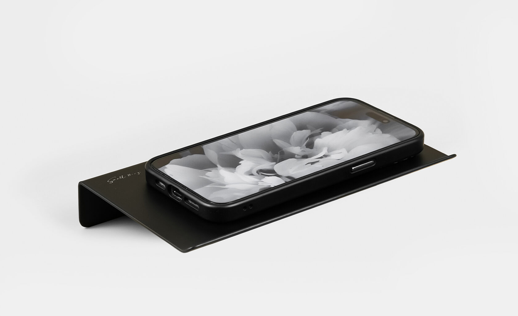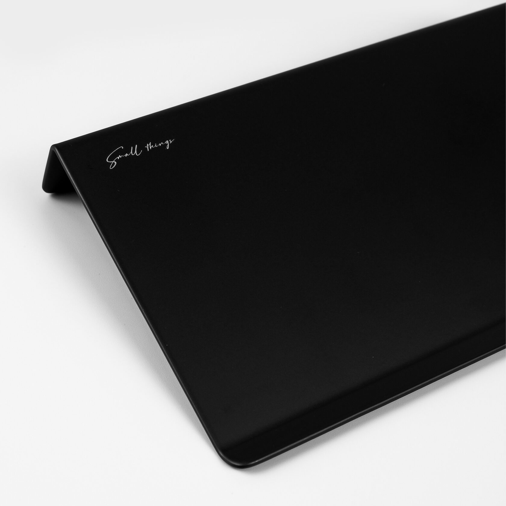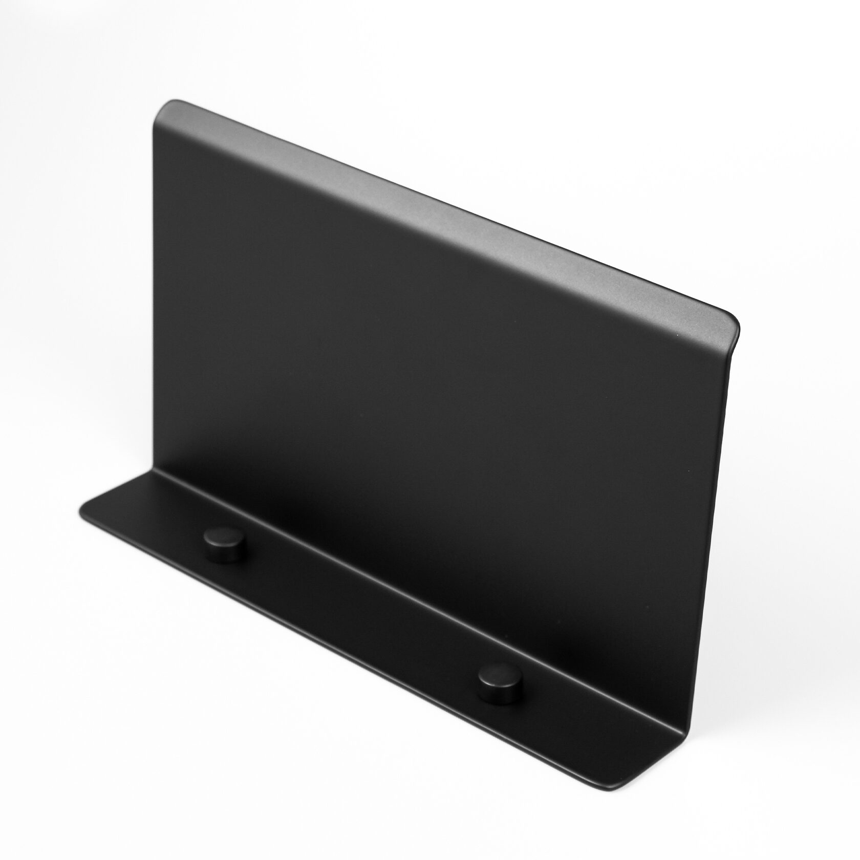Прямая полка имеет скругленные углы и край с небольшим загибом, матовое черное покрытие, приятное на ощупь.