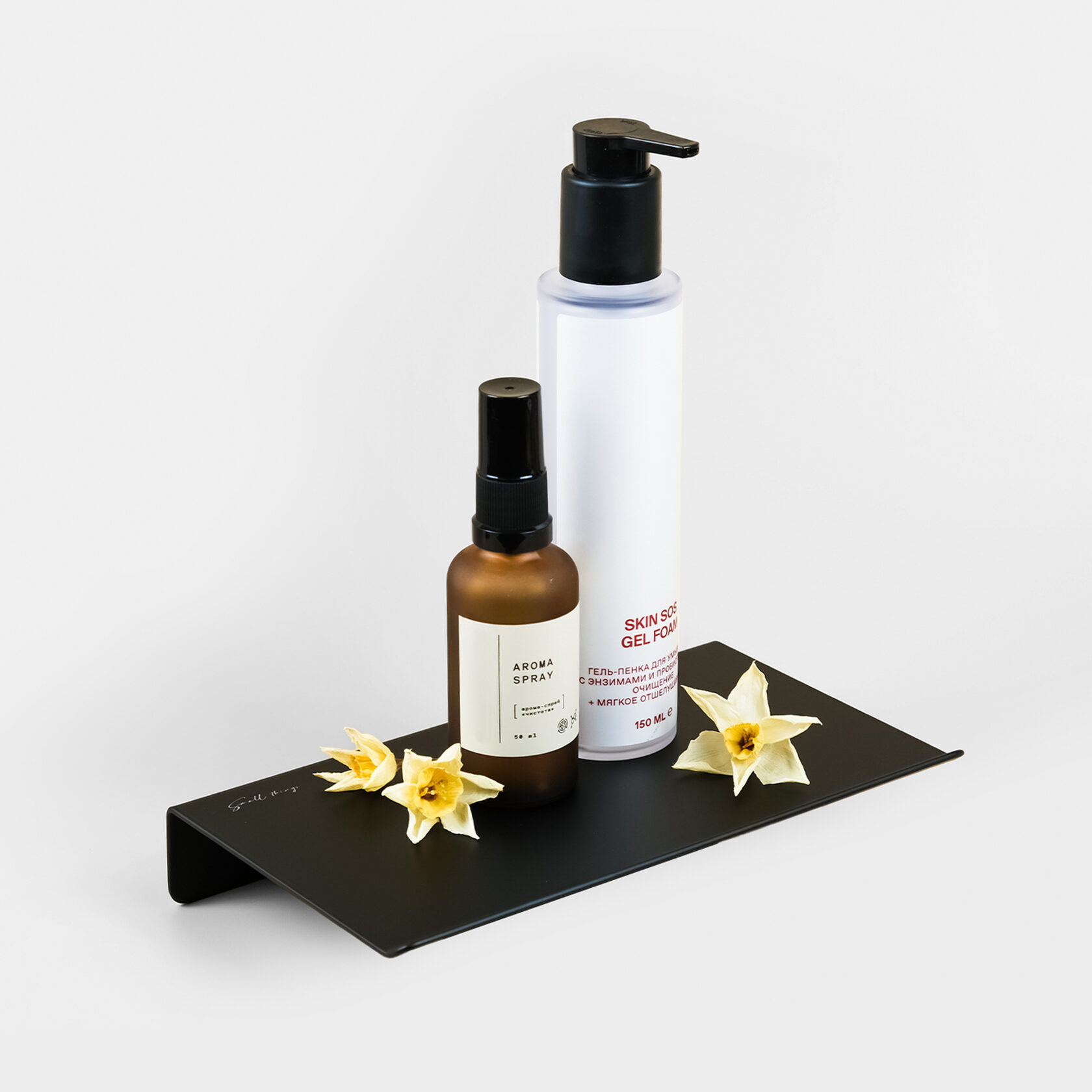 Полка подойдет для размещения как в зонах прямого попадания воды (под душем, над ванной), так и влажных/сухих зонах. За счет матового покрытия и прямого угла даже при попадании воды баночки не будут скользить по поверхности.