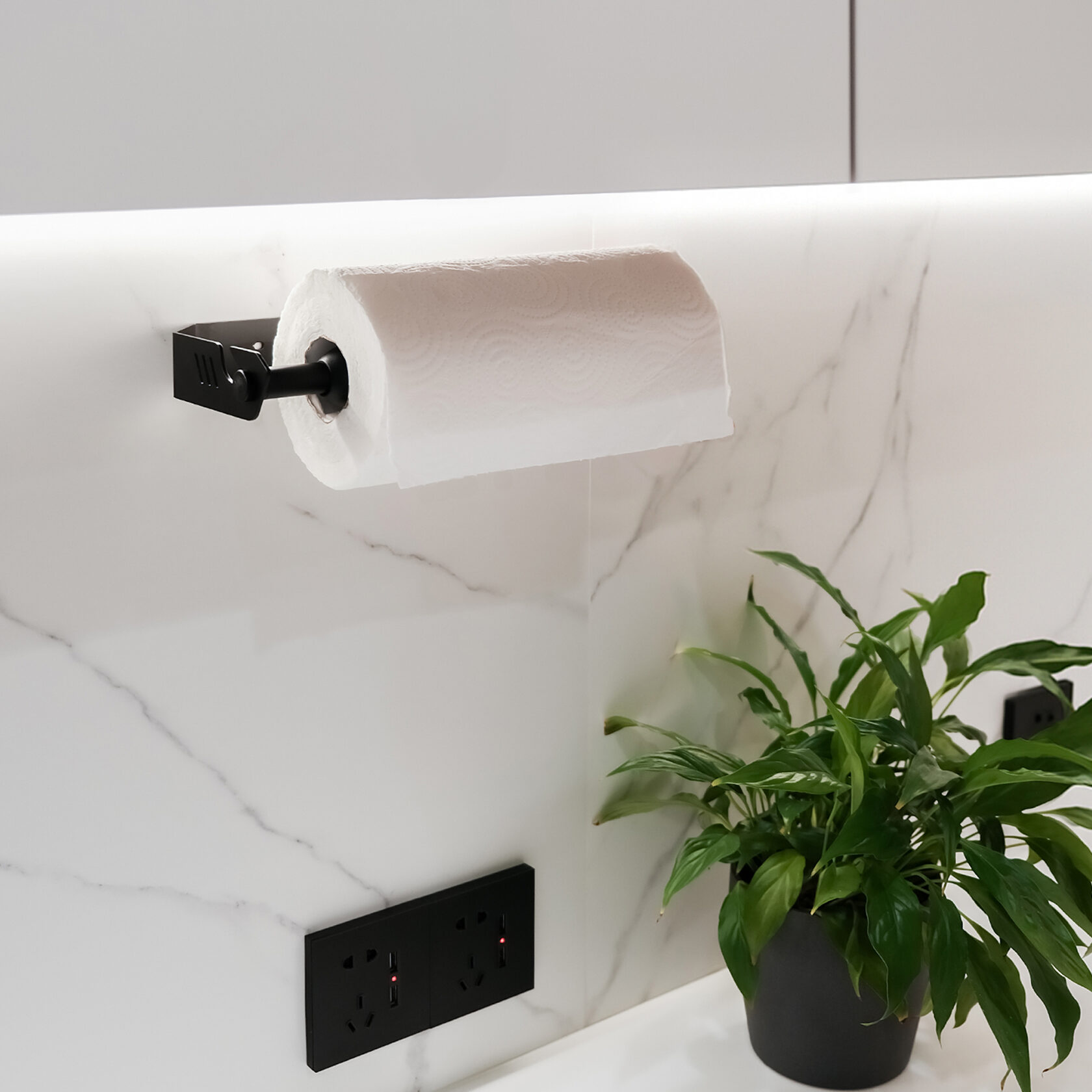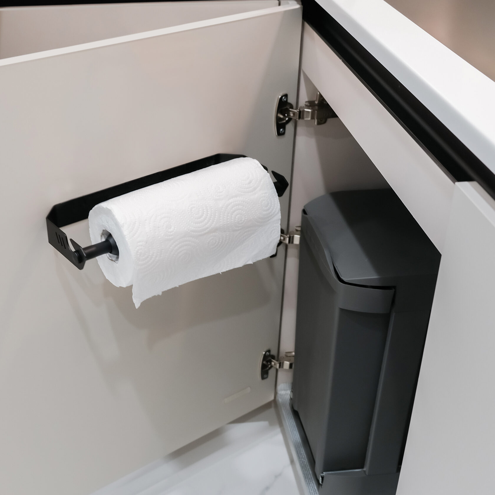 Держатель можно установить на плоскость стены или низ шкафа/под столешницу.